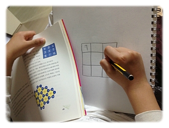 게임 노트에 마방진이 빠져있었다며, 신나게 책을 읽어 내려가더니
