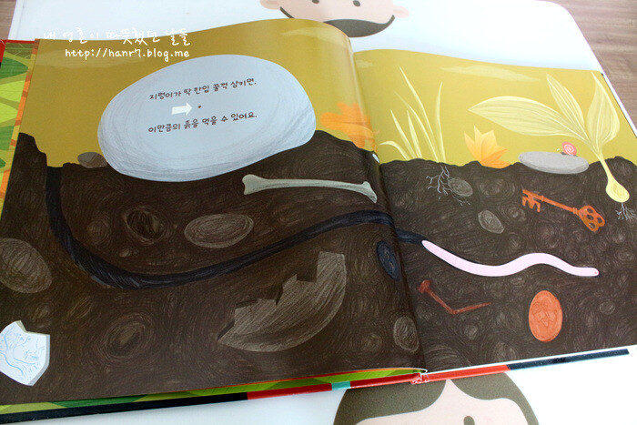 땅 속에는 식물 뿌리도 있고, 열쇠와 단추, 뼈다귀, 유리조각도 있답니다