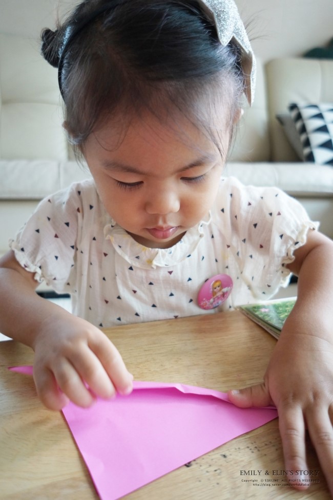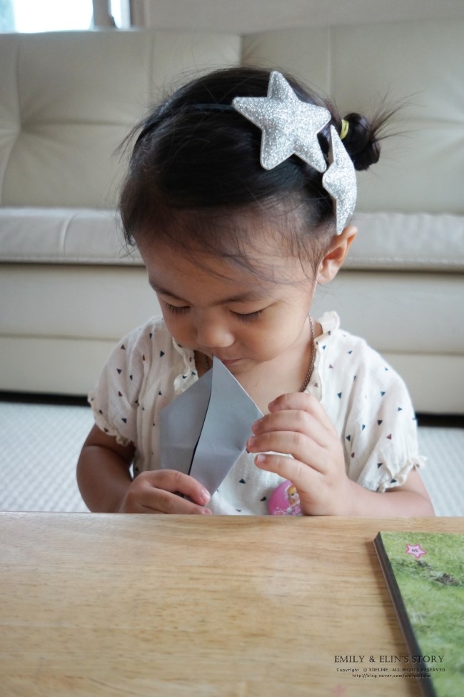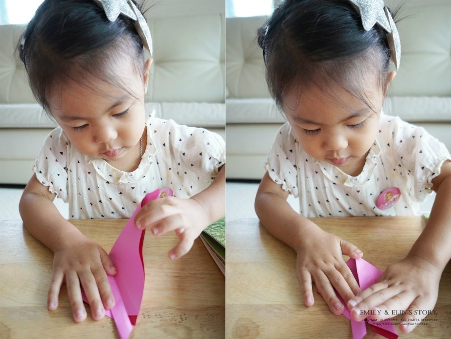 작은손으로 꼬물꼬물 색종이 접는 모습을
