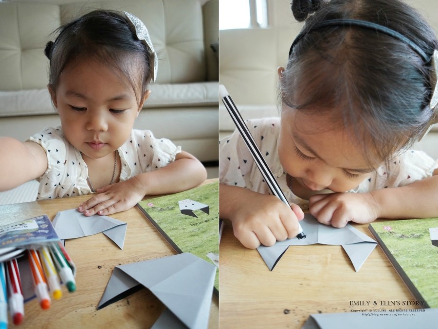 언니를 따라서 종이접기도 하고,