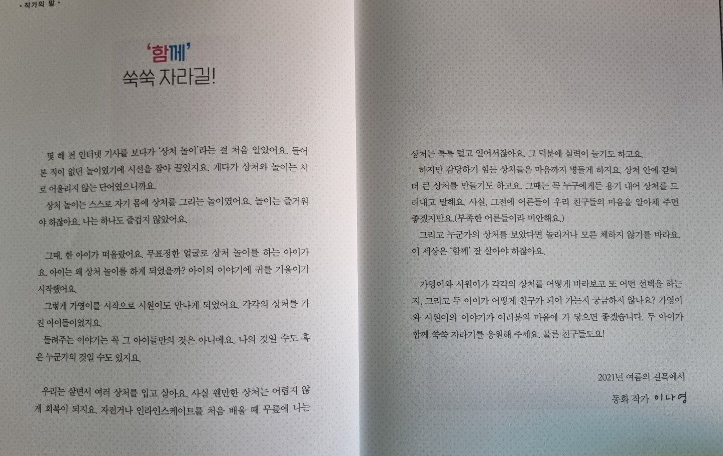 강희지가 자신의 이야기를 용기있게 말하고 친구에게 도움을 청할 수도 있고 흔쾌히 그 도울 수 있는 멋진 두 친구.