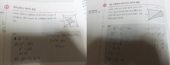 피타고라스 앞부분 풀수 있는 서술형 문제 몇개 풀어봤네요.