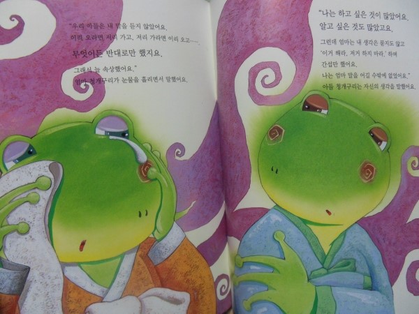 <엄마 청개구리의 입장이 된 아들 청개구리>에서도 기존의 이야기를 그대로 보여줍니다.