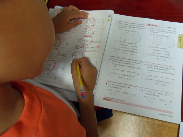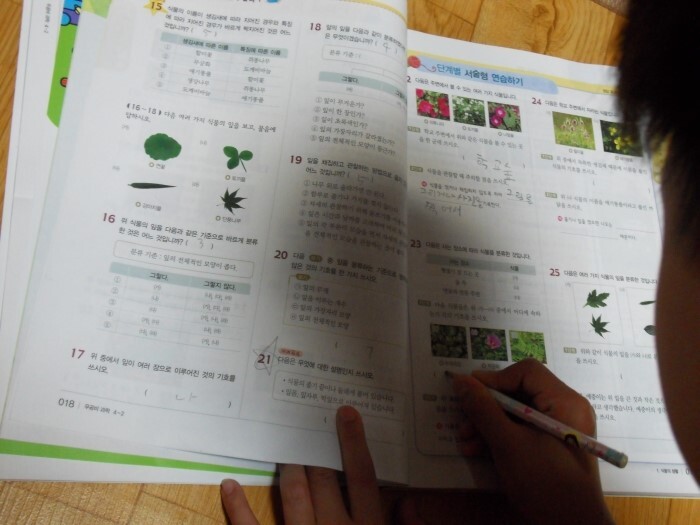 처음엔 문제집에 그냥 풀었는데 방학때는 엄마랑 함께 노트에 풀고 나서