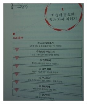 학습에 필요한 앉은 자세 익히기 부터 보기, 듣기, 생각하기, 기억력 높이기, 집중과 휴식의 구별등