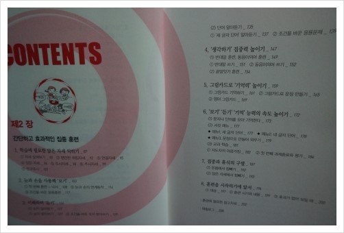 다양한 방법의 훈련을 제시하고 있어서 꾸준히 하나씩 해보면 분명 우리 아이의 집중력 향상에 많은 도움이 될것이라 생각되네요.