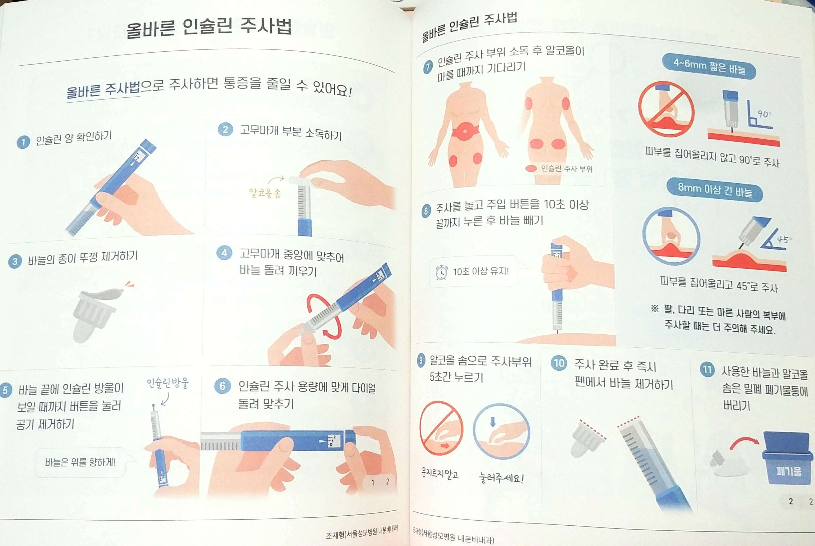 이 책은 당뇨병에 좋은 운동법이라든지, 고혈압 약을 깜빡해서 먹지 못했을 때의 대처 방법 등 현실적으로 아주 중요한 부분도 함께한다. 주사 각도나 바늘 길이에 따른 차이까지 시각적으로 분리해 보여주는 세심함도 보인다. 당뇨와 고혈압의 유발인자에서 60대 이상의 어르신들이 많기 때문에 이 책은  실용서로서 높은 완성도를 증명한다. 곁에 두고 필요할 때마다 꺼내 보며 정보를 확인하기에 최적화된 책이었다. 정말 이런 책이 진작 나왔어야 했다.
