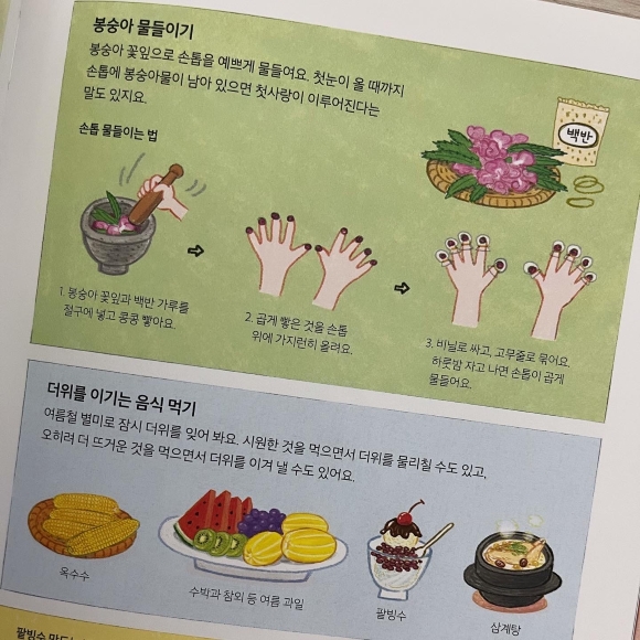 새해, 마지막 날, 소풍, 방학 등의 내용도 같이 있어서 자연스럽게 일상에서 경험할 수 있는 관점으로 받아들일 수 있는 내용이고, 다달이 책에 나와있는 활동들을 해보고 먹거리를 먹으면 직접 경험하는 것들도 풍부해지고 자연스럽게 기억에 잘 남을 수 있을 것 같아요.