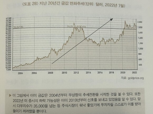 금을 매입했던 것이다. 작가님은 2019년 금 가격이 상승할 때 매도를 해야 한다고 주장한다. 금 가격이 오르는 것은