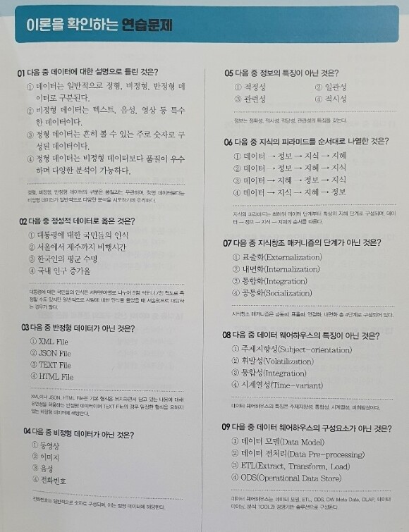 밑에 답에 대한 번호가 써 있는 경우가 많은데, 이 책은 번호가 아니고 설명으로 답을 풀이해놔서 문제를 풀 때