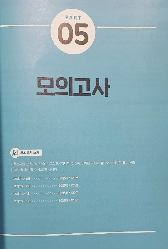 마지막으로 4개의 필기 과목 챕터를 끝내고 나면 파이널 모의고사 까지 존재한다. 4회분의 모의고사가 존재하며