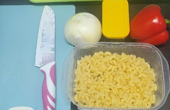 재료는 스팸과 양파, 마카로니 그리고 파프리카를 준비했고,