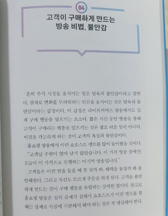 불안감이라는 파트였다. 홈쇼핑에서 쇼호스트분들에게 들을 수 있는