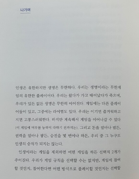 작가님은 우리가 무한게임을 살기를 원하고 있다.