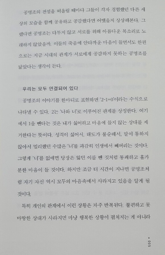 책의 앞부분에서 공명조라는 두 머리 중에 하나가 죽으면, 다른 하나도 따라