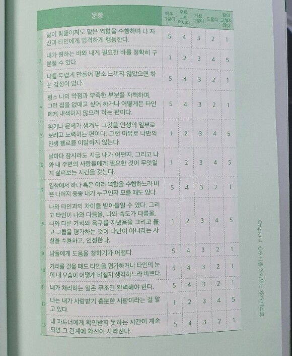 작가님이 준비한 자가테스트 항목이다. 뒤에 내용이 더 있는데 총 50문항이 있으며,