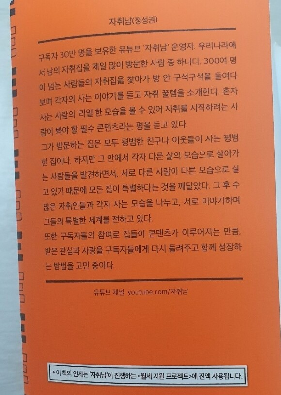 작가님은 여러 자취생들의 얘기를 유튜브에 담으며 책을 출간하셨다.