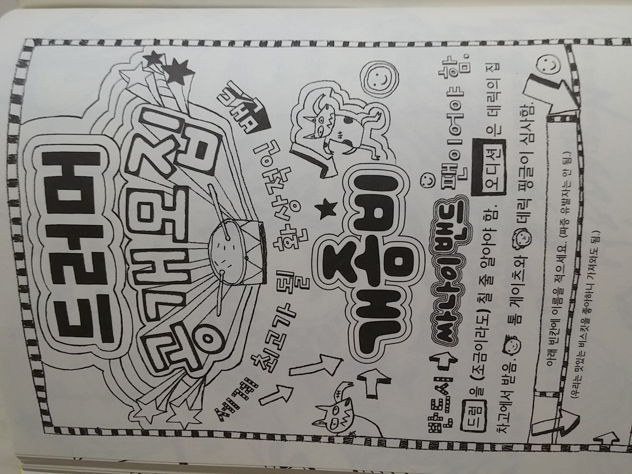 개좀비 밴드는 톰과 데릭 두 명이었는데 거친 그대라는 곡을 제대로 연주하기 위해서 드러머를 모집하게 되요. 이 포스터에도 누군가 장난을 치긴 했지만 결국 멋진 드러머를 구하게 되죠. 그리고 세 멤버는 톰의 화석인 할아버지의 도움으로 양로원에서 첫 공연도 멋지게 성공시켜요.