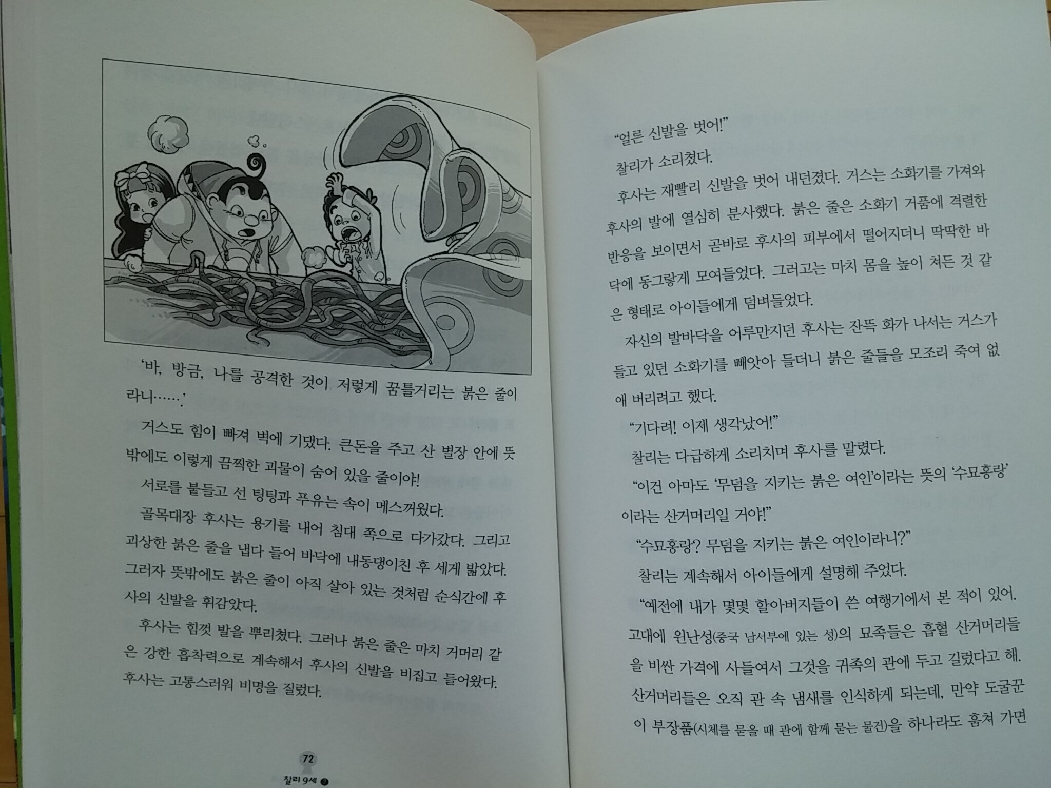 허니에듀 밴드 서평단 이벤트를 통해서 찰리 9세 1권을 처음 읽어본지가 엊그제 같은데 벌써 7권이 나왔네요. 한 권 한 권 나올때마다 찰리 9세에 대한 기대감도 점점 높아지는 것 같아요. 이번에 나온 7권은 표지부터 다른 권에 비해 더 으스스하네요. 표지에 있는 붉은 실 같은 것이 무엇인지 궁금해서 뚫어지게 쳐다보았는데 도대체 예상이 되지 않네요. 뱀이라고 하기에는 좀 부족한 것 같고 붉은 지렁이가 있다면 이런 모습이지 않을까 싶네요. 아이도 표지를 보면서 이 붉은 실 같은 것의 정체가 너무 궁금했다고 하네요. 하지만 나중에 이것들의 정체를 알고 조금은 실망했다고 하네요.