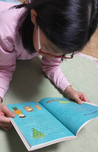 역시나 책을 보자마자 관심을 갖더니 앉은자리에서 책을 읽기 시작한 데이지양