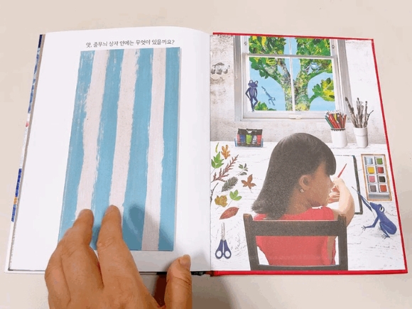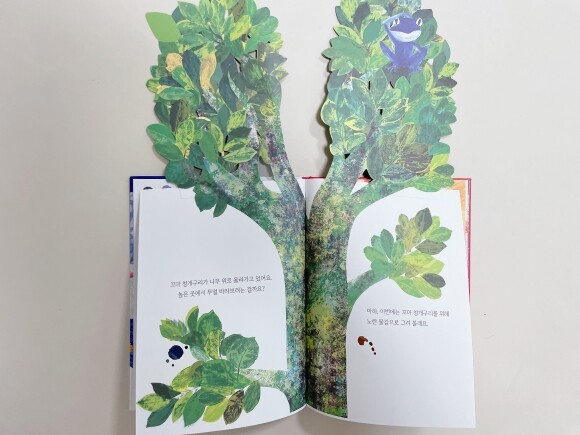 초록색 나무에 나무위에 올라간 플랩페이지를 가장 좋아하더라구요.
