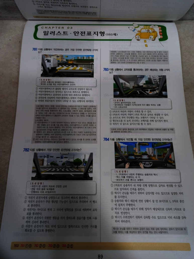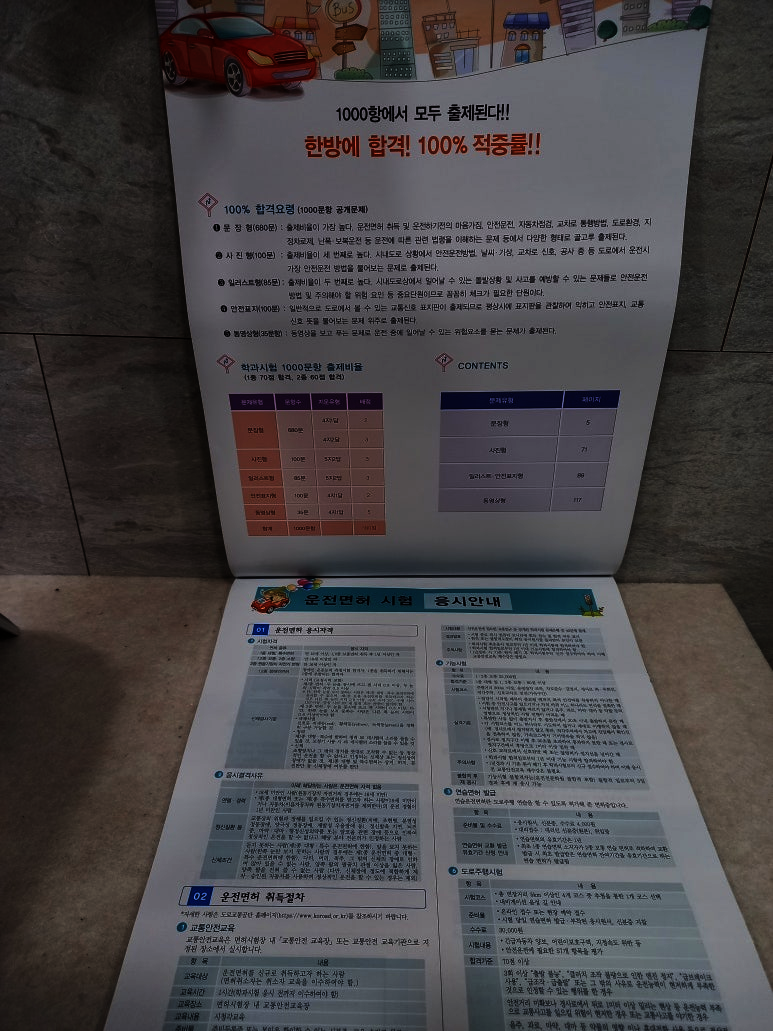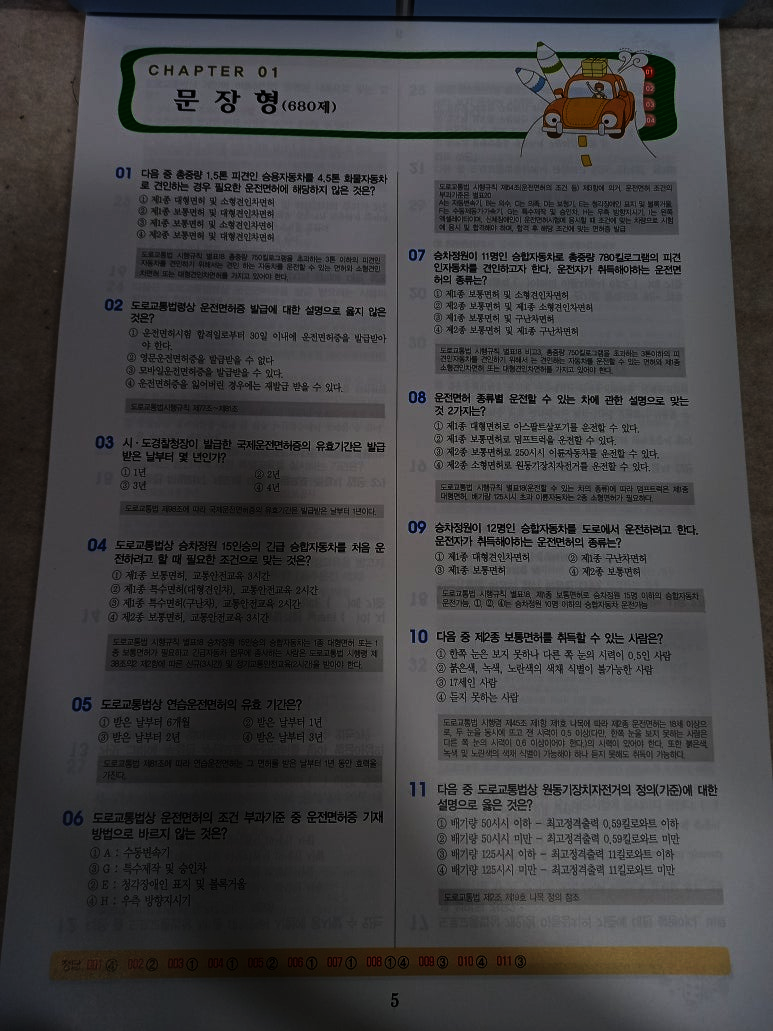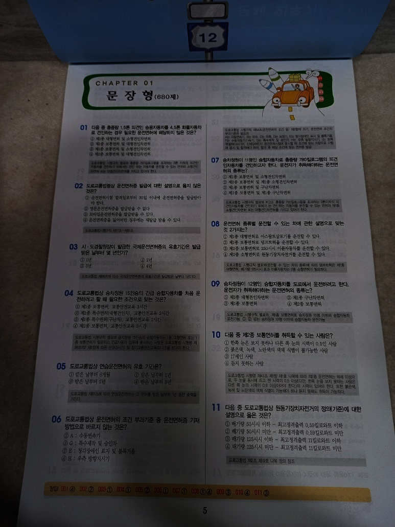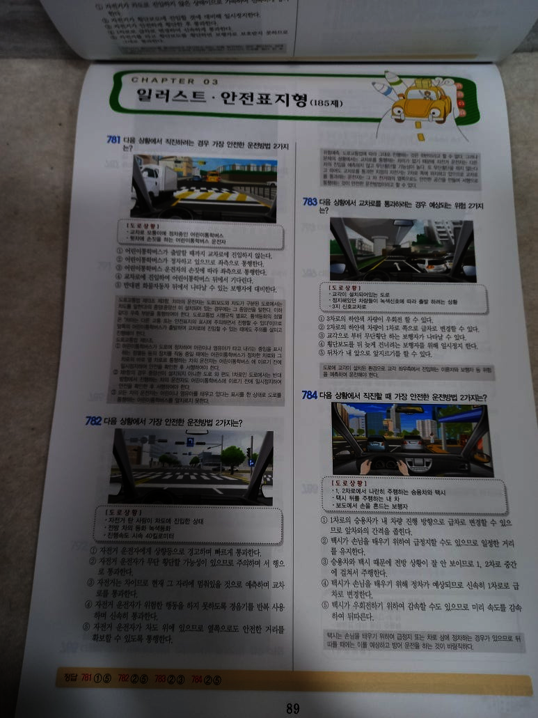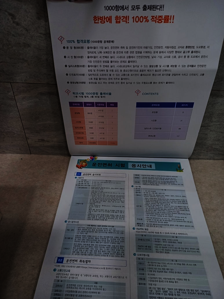 문제집을 펼쳐보면 운전면허 필기시험에 대한 기본적인 내용들이 수록되어 있습니다.