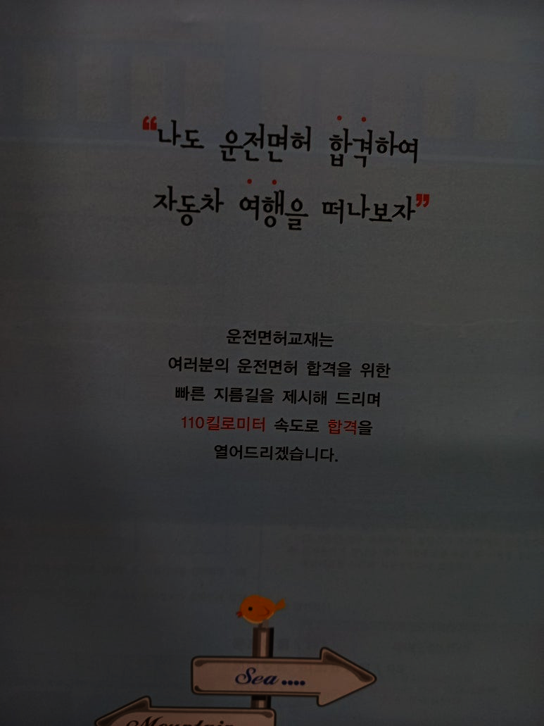 나도 운전면허 합격하여 자동차 여행을 떠나보자............응원의 문구도 보입니다.