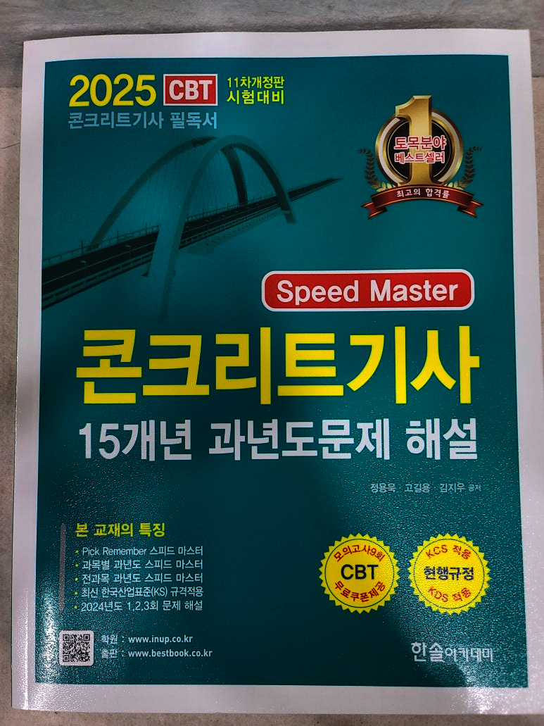2025 Speed master 콘크리트기사 필기 15개년 과년도 - 개정11판, CBT모의고사 무료제공