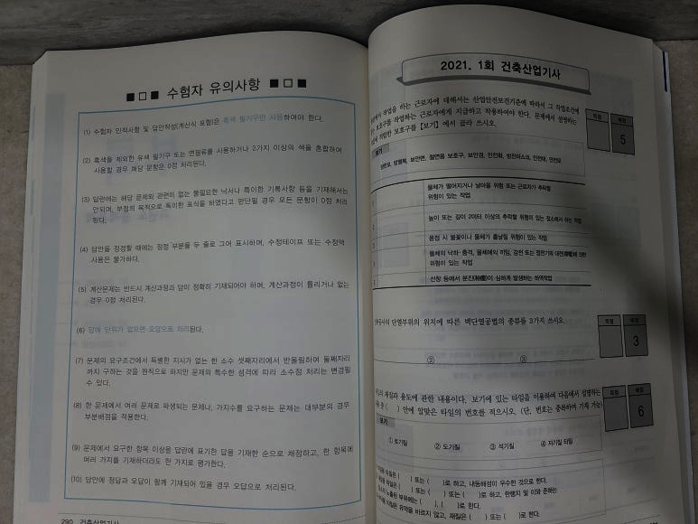 수험자 유의사항도 나와있고, 실제 시험을 보는것처럼 수록되어 있어서 시험을 보는 기분으로 문제를 풀어 볼 수 있습니다.