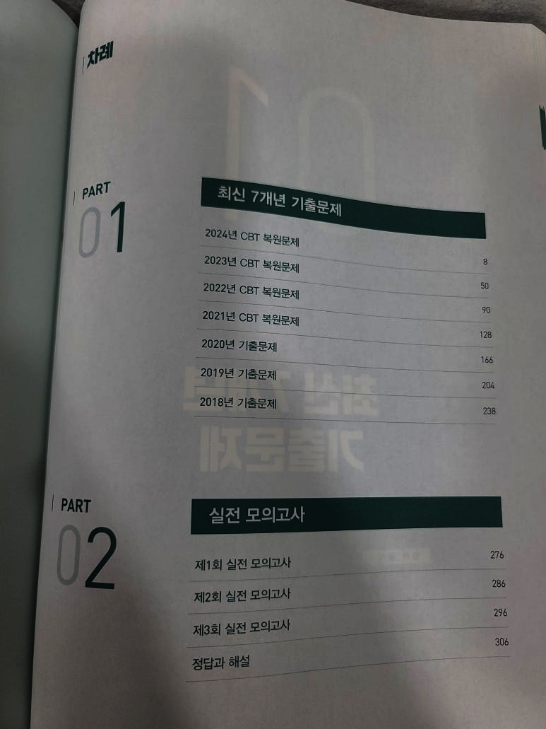 기출문제편에는 최신 7개년 기출문제가 수록되어 있습니다. 3회분량의 실전모의고사도 있습니다.