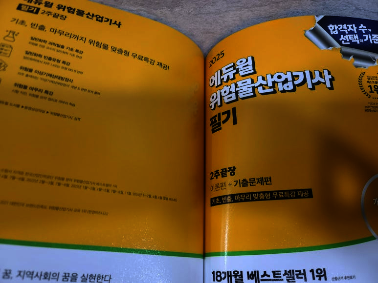 에듀윌에서 나온 2025 위험물산업기사 필기 2주끝장 교재로 준비하기는것을 강력 추천드립니다.