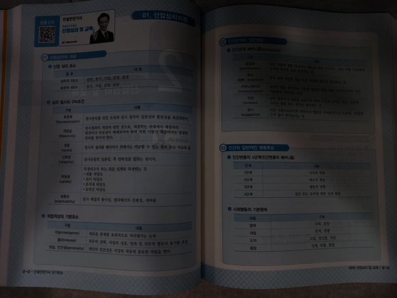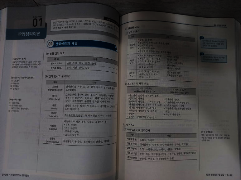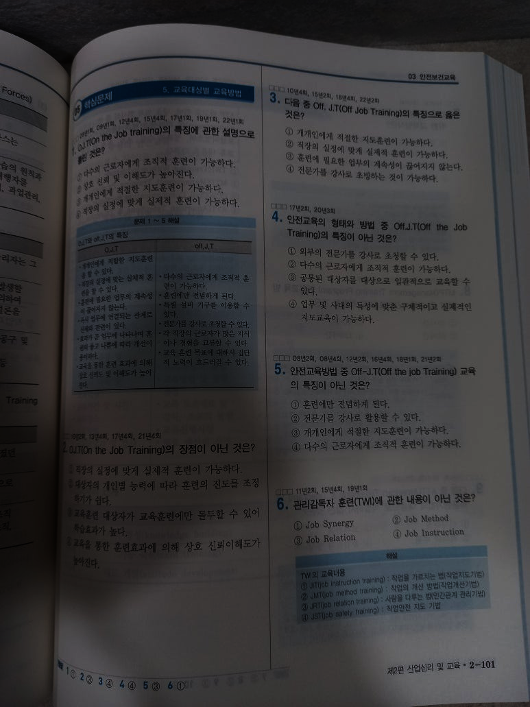 이론파트에는 필기시험에 대한 이론들이 설명과 함께 다양한 표와 그림들이 수록되어 있습니다. 그림 사진들이 아주 자세하게 설명이 되어 있습니다. 또한, 이론에 해당하는 출제예상문제도 수록되어 있습니다.