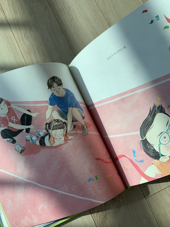 달리기하다가 넘어지면 1등을 하지 못할 수도 있어. 하지만 1등이 아니라고 속상해할 필요는 없다고 말해줬는데 현실로 부딪히면 또 속상해하겠죠?