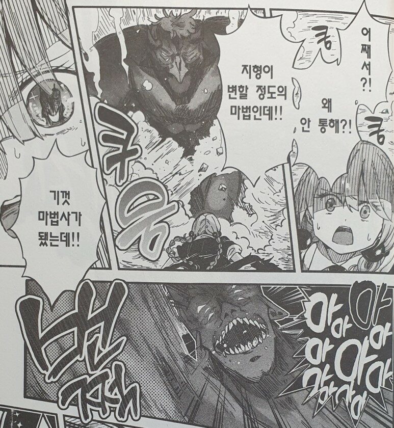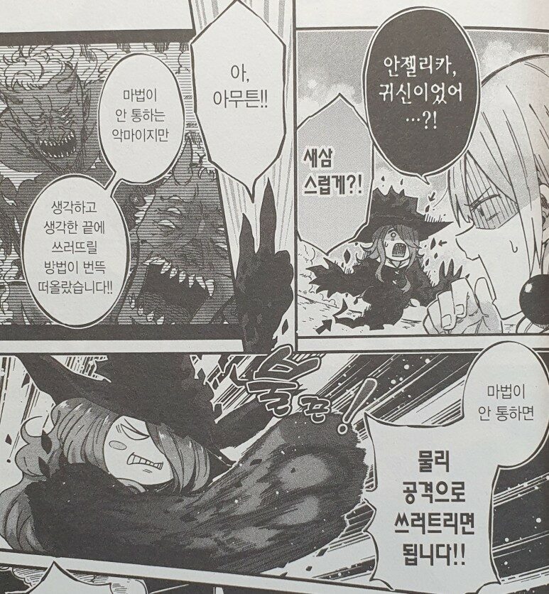 더 이상 떠오르는 마법이 없어 악마가 공격해 오는데도 매지컬, 매지컬만을 외치고 있던 쿠온은,,,