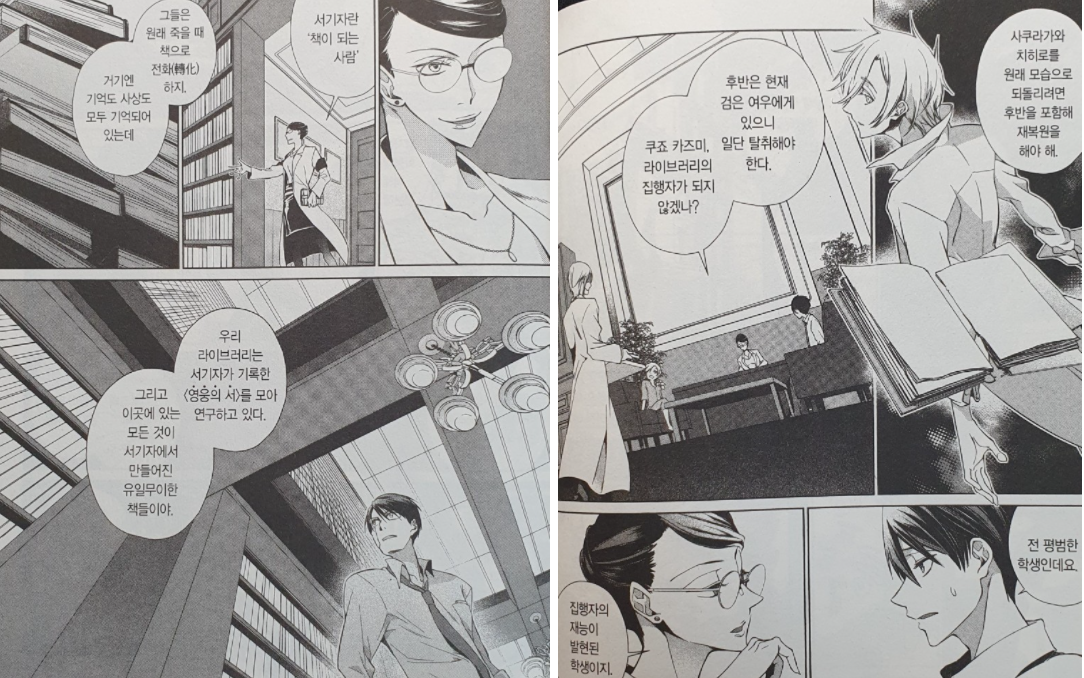 앞서 서기자는 죽은 후 책으로 전화한다고 했지만, 특이하게도 치히로는 살아 있는 상태로 책으로 전화했다. 그렇기 때문에 다시 인간으로 복원할 수도 있었다. 하지만 무엇 때문인지 라이브러리와 대적하는 집행자 '검은 여우'가 치히로를 노리고 그를 위협하자, 치히로의 오랜 친구이자 절친인 카즈미는 집행자가 되어 그를 지키기로 한다.