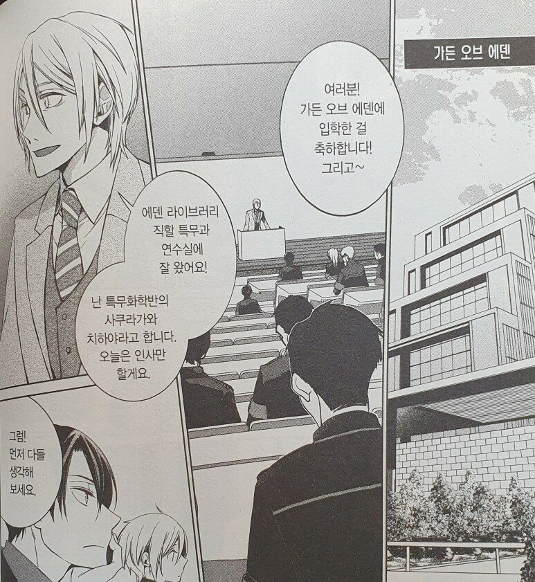 책의 중반부에는 집행자로서, 서기자로서 제대로 힘을 키우기 위해 카즈미와 치히로가 라이브러리의 학원섬, 가든 오브 에덴에 입학하는 모습이 나온다. 라이브러리는 세계 평화를 위해 여러 책을 모으고 조사하며, 그 책을 제대로 활용할 수 있는 집행자를 육성하기도 하는 기관이다.