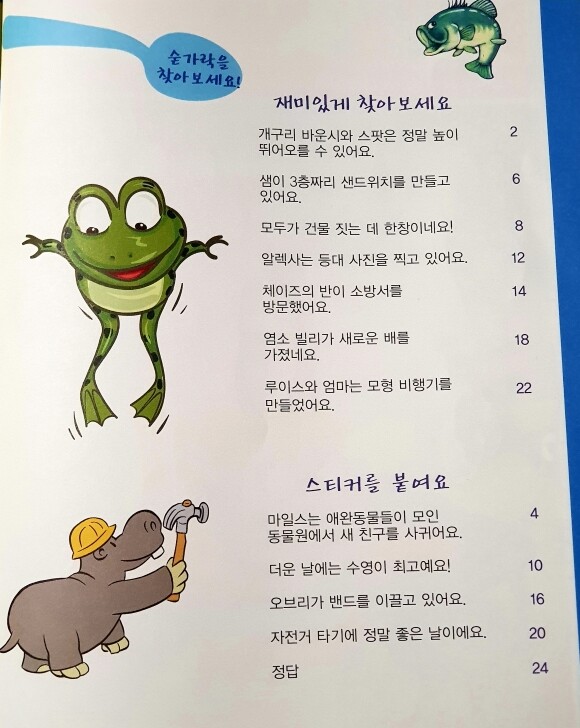 단순히 숨은그림만 찾는것이 아닌... 96개의 다양한 스티커가 들어있어 스티커도 붙일수있내요..