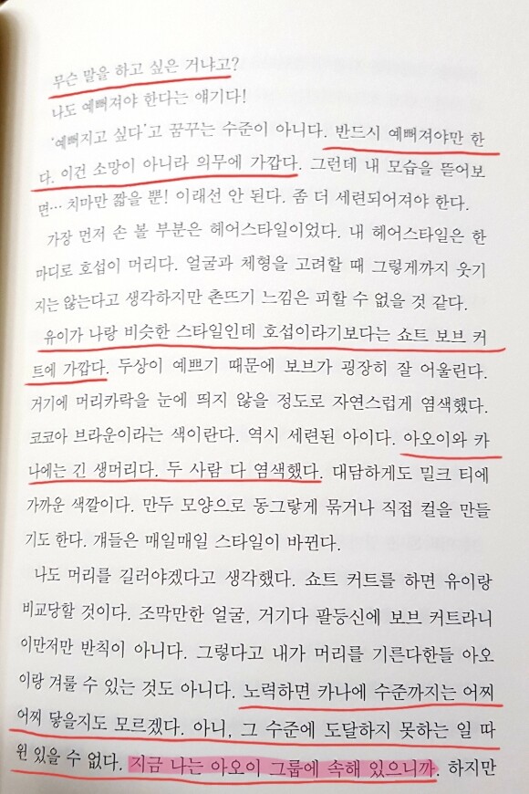 아오이 그룹에 들어가기위해 그 애들이 패션에 맞춰야 한다고 생각한