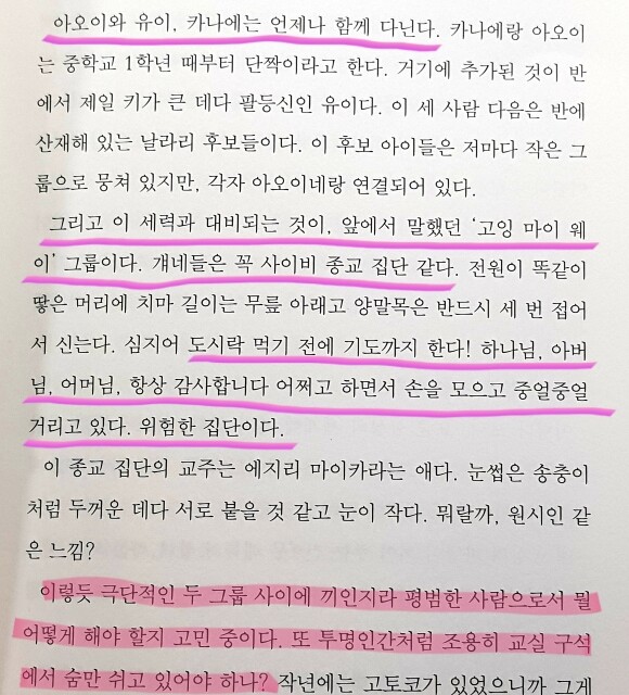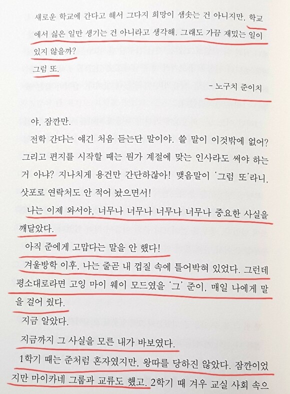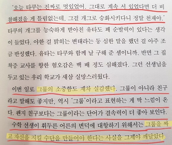 이 책을 읽으며 잊고 있던 중학교 시절의 모습이 떠올라 중학생으로 돌아가 공감