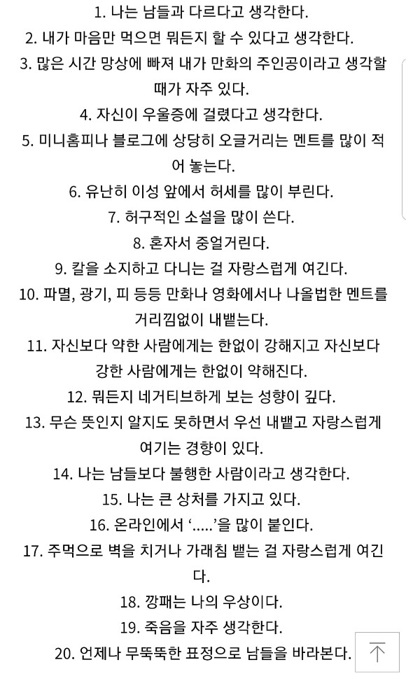 10점이 넘으면 아직 철이 덜 든 사람으로 여기서부터 중2병으로