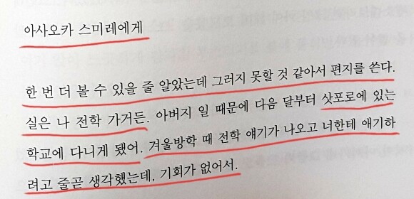 준의 편지를 받은 스미레는 아직까지 준에게 고맙다는 말을 못했음을