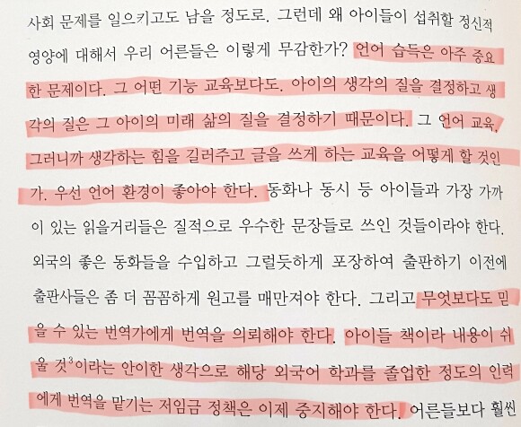 읽는 어린 독자의 사고의 질, 언어의 질, 나아가 삶의 질에