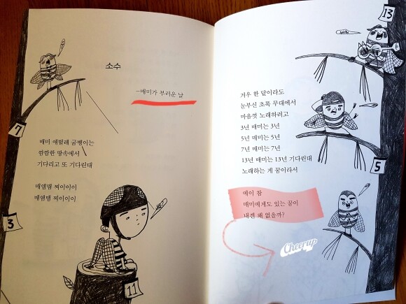 글귀가 마음을 슬프게했다.... 용기내라고 cheer up 이라 써보았다