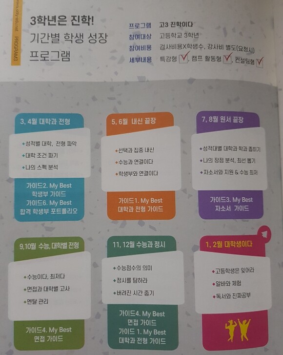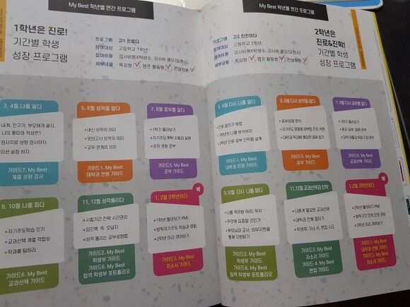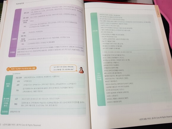 이러한 형식으로 각 계열별로 실제사례를 보며 "내가 했던 것은 (o) 표시 해보고, 해야할 것은(*)해 보며 "미래애 내가 할야 할것" 계획표가 작성되어있어 자신만의 계획을 준비할수있다.