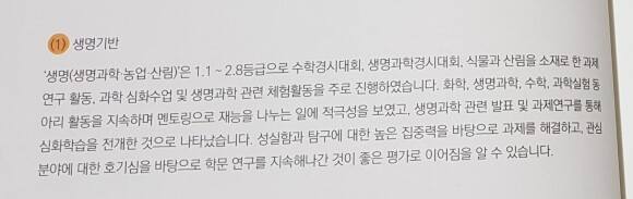 실제 생명기반 계열에 합격한 사례가 자세히 살펴볼 수 있도록 설명되어져있다.