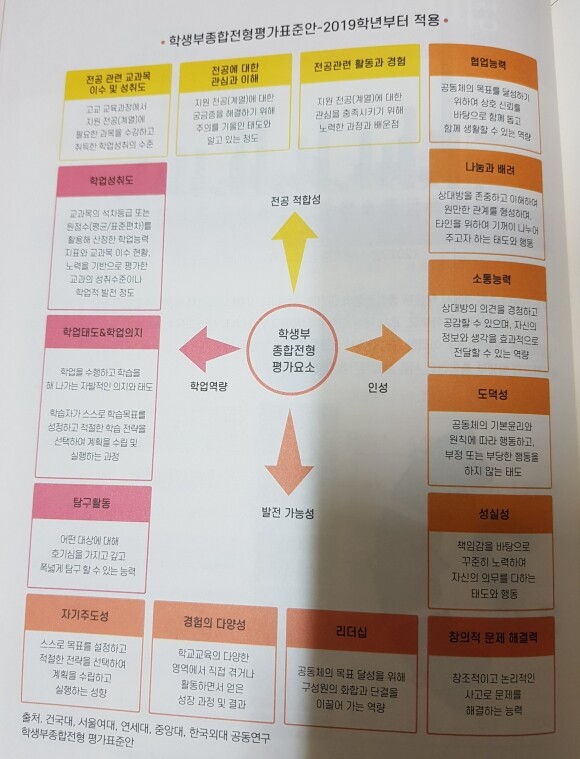 학생부종합전형평가표준안에서 여러가지 평가요소들을 확인할수있다.