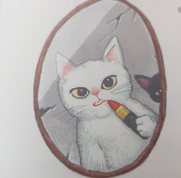 제목 [신부님을 사랑한 고양이]이라 적혀있으니, 고양이가 바라보는 대상은 아마도 신부님이 아닐까?