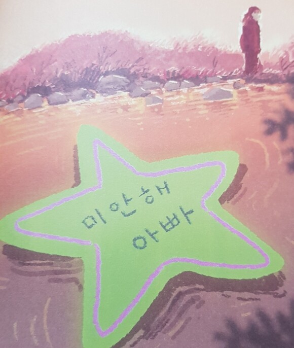 수인이는 너무나 가지고 싶었던 별 메모지에 "미안해 아빠"라고 쓰고
