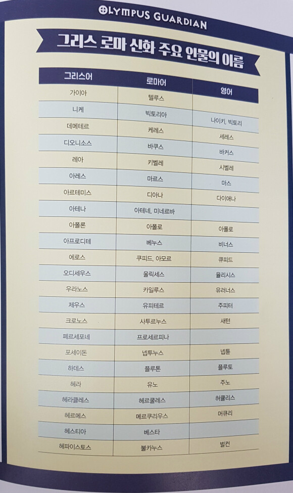 신들이 계보,그리스 로마 신화 주요 인물의 이름이 수록되어져있어요