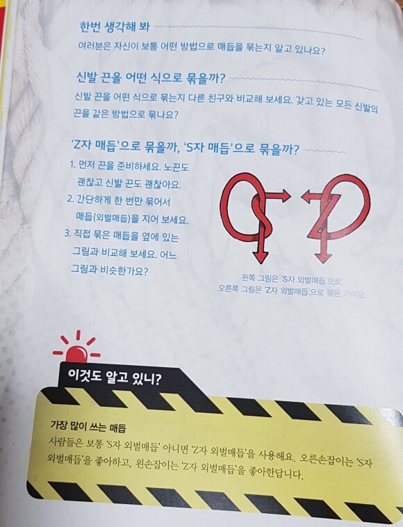 아이들이 이페이지를 보고  s자  매듭,z자 매듭의 글을 읽고
